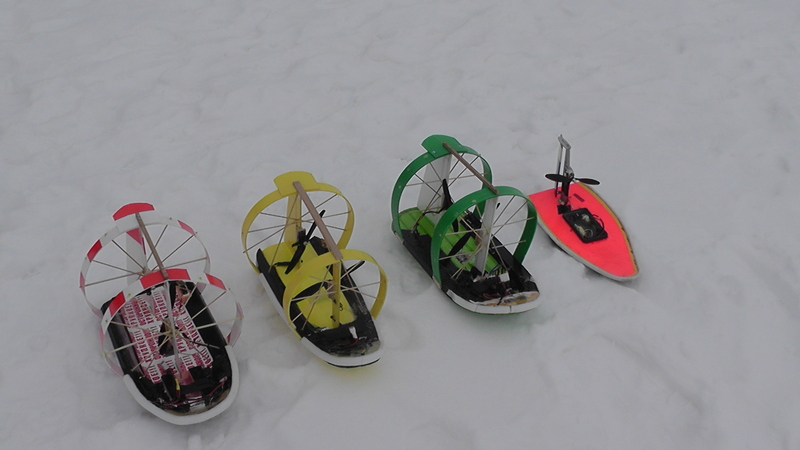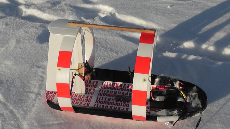 Да, и, собственно говоря, данные зимние аэроботы и к судомоделям-то отнести проблематично – они вместо водоизмещающего корпуса имеют плоскую и тонкую лыжу, которая тут же зальётся водой, если такой аэробот поставить на воду.