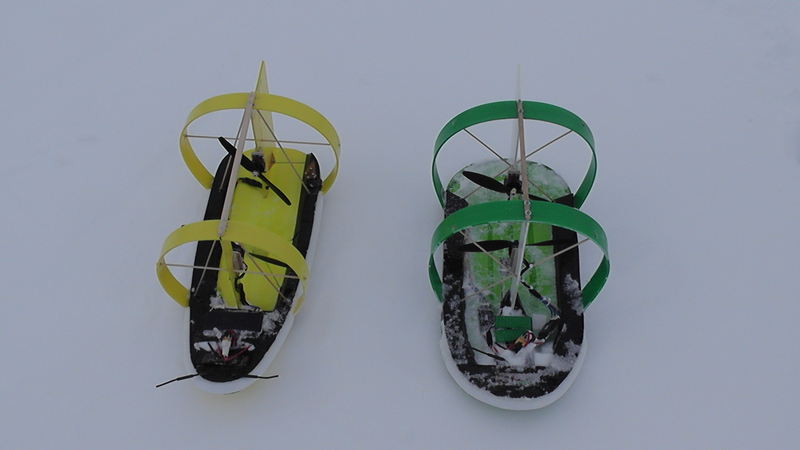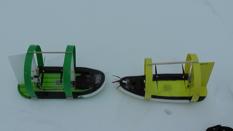 Да, и, собственно говоря, данные зимние аэроботы и к судомоделям-то отнести проблематично – они вместо водоизмещающего корпуса имеют плоскую и тонкую лыжу, которая тут же зальётся водой, если такой аэробот поставить на воду.