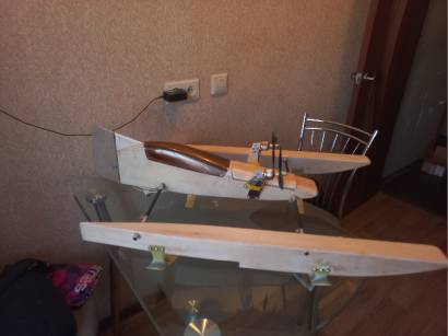 Слепо копировать не стал, взял за основу схему крыльев и воздушный движитель. В отличии от прототипа, у Водомерки два поплавка и центральный поднятый корпус с рулём направления и двумя двигателями. Управление осуществляется как рулём направления, так и разнотягом двигателей. Как и на Полярном Лисе, на Водомерке три режима разнотяга. Так как сам руль направления управляется от отдельного канала, то есть возможность обойтись без режима отключения функции, и настроить три разных по величине режима. Скажем 25%, 50% и 100%. Величину уточню во время запусков. В принципе можно задействовать и ещё один переключатель, тогда реально сделать шесть режимов. Только надо ли это делать? Подумаю.