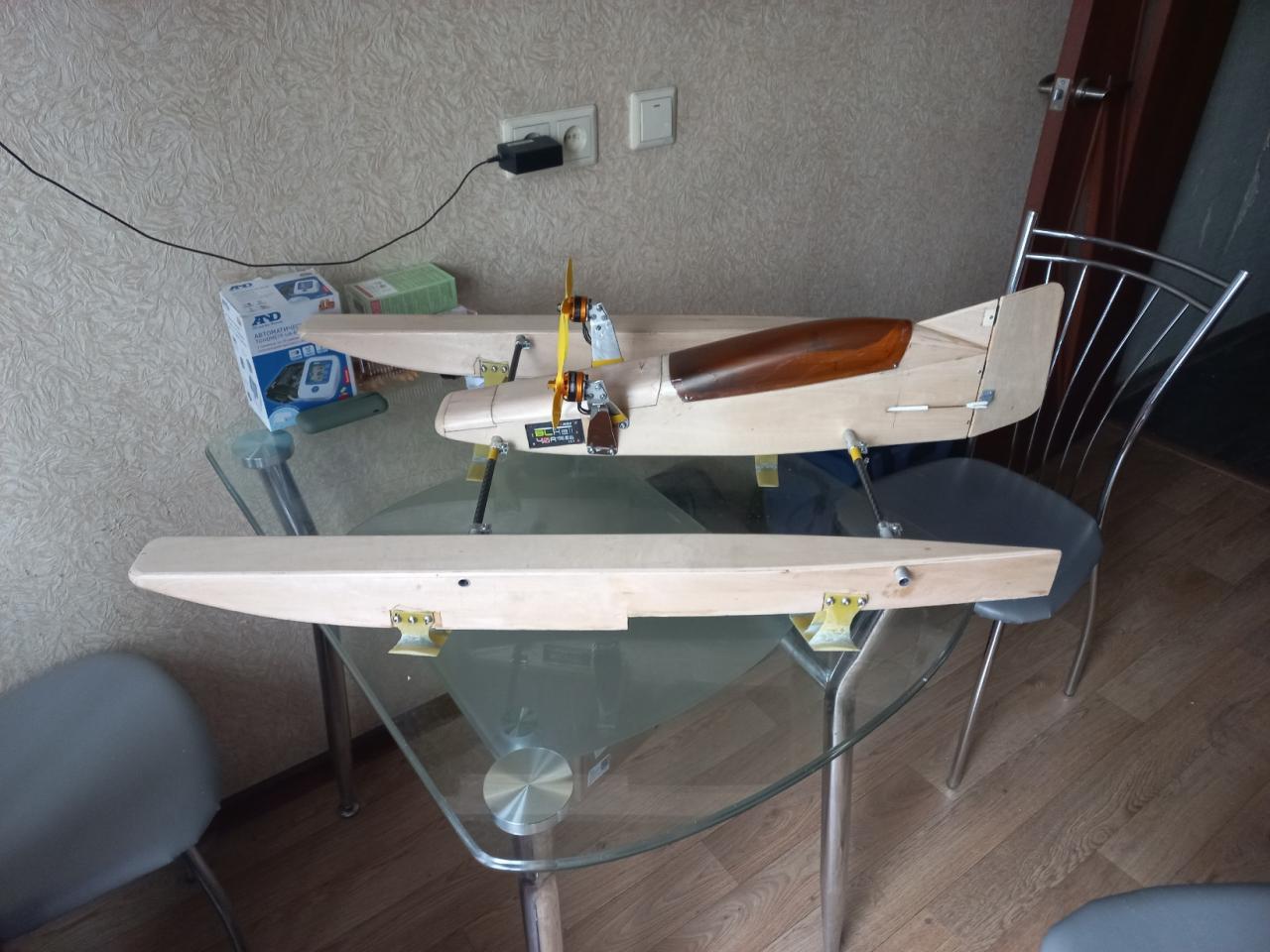 Конструктив аппарата для меня традиционный. Липовая фанера 1.5мм, бальза, карбон, стеклотекстолит. В принципе, всё видно на фотографиях. Если у кого будут вопросы, задавайте.